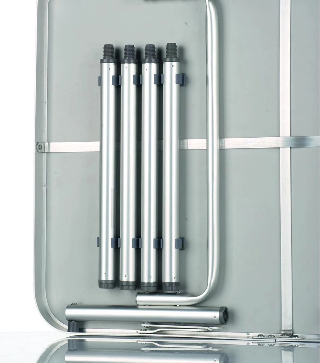 Het frame van deze tafel is van lichtgewicht aluminium. Hij is dus superlicht en erg handig om mee te nemen. Heb je de campingtafel niet meer nodig dan klap je hem in. Opgevouwen neemt dit tafeltje niet veel ruimte in beslag.