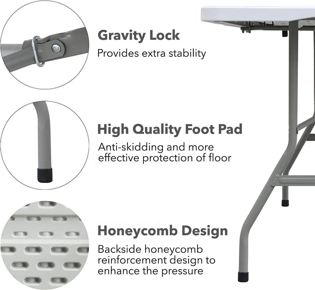 De MaxxGarden opvouwbare tafel is gemaakt van high-density polyethyleen (HDPE) en gepoedercoat staal. Het lichtgewicht ontwerp, draaggreep en auto-lock maken het zeer eenvoudig de tafel op te slaan en voor iedereen gemakkelijk op te zetten en neer te halen. De bank is UV-beschermd, zal niet barsten of afbladderen en is gebouwd voor gebruik binnen en buiten. Het gepatenteerde stalen frame ontwerp biedt een stevige basis en heeft een weerbestendige afwerking. Ideaal voor familiedagen, bbq’s, verjaardagen en nog veel meer, Lifetime’s opvouwbare tafel is de perfecte aanvulling in uw huis.
